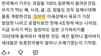 | 한국 과일 역사는 전부 일본 때문이다 | ❌ 근거 없음 |