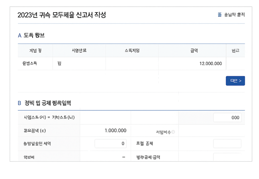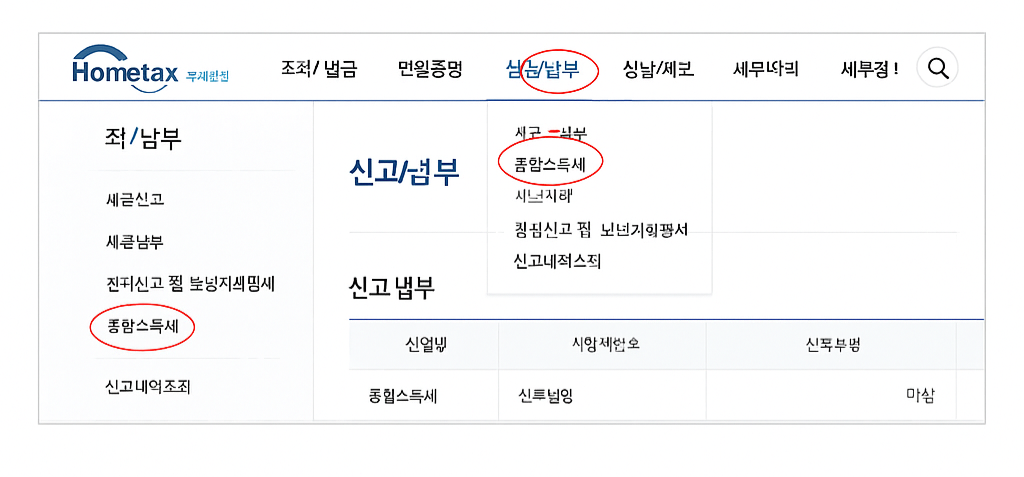 홈택스 경로: 신고/납부 → 종합소득세 신고서 작성